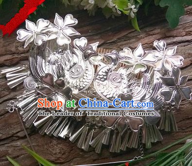 9178. Chinese Traditional Ethnic Hair Crown Sliver Tassel Step Shake Miao Nationality Bride Hairpins for Women