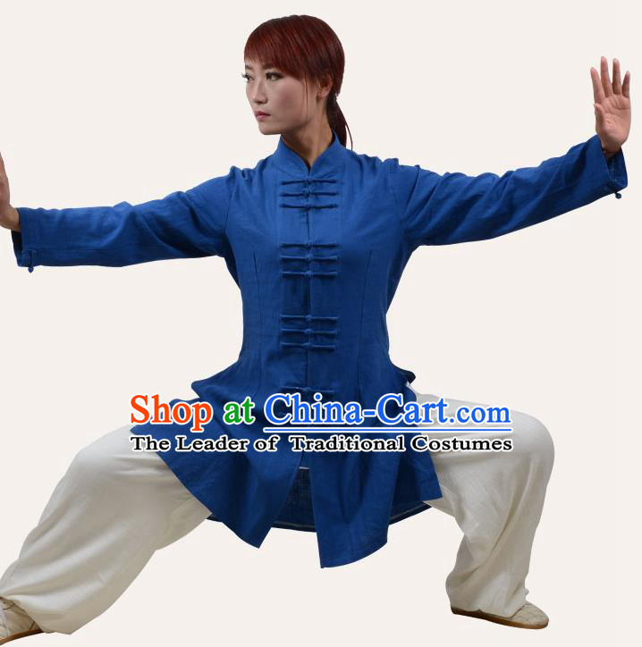 Top Grade Linen Martial Arts Costume Kung Fu Training Clothing, Tai Ji Peacock Blue Uniform Gongfu Wushu Costume for Women for Men