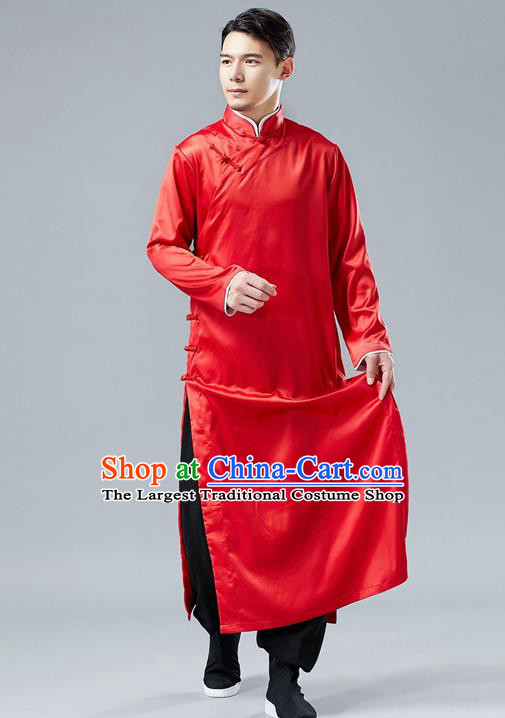 Top Chinese Tang Suit Light Green Flax Robe Traditional Republic of China Kung Fu Costumes for Men
