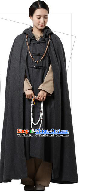 9058. Traditional Chinese Kung Fu Costume Martial Arts Linen Hooded Coat Pulian Clothing, China Tang Suit Jackets Tai Chi Meditation Coffee Overcoat Clothing for Men