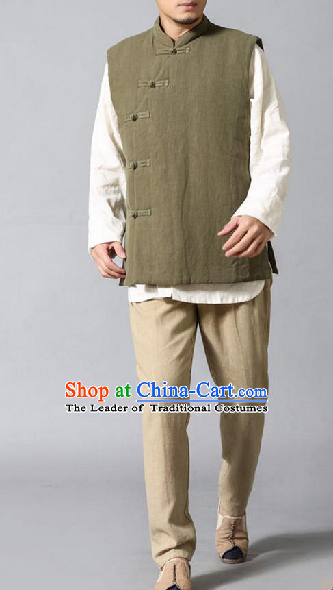 Traditional Chinese Top Thicken Linen Kung Fu Costume Martial Arts Kung Fu Training Uniform Tang Suit Gongfu Shaolin Wushu Clothing Tai Chi Taiji Teacher Suits Uniforms for Men