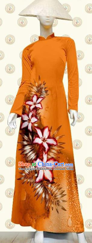 Vietnam Traditional Clothing Printing Cheongsam with Pants Asian Vietnamese Costume Custom Orange Ao Dai Dress
