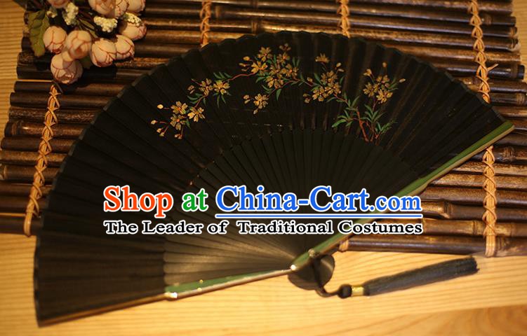 8645. Traditional Chinese Crafts Hollow Out Peony Folding Fan China Oriental Black Bamboo Fans for Women