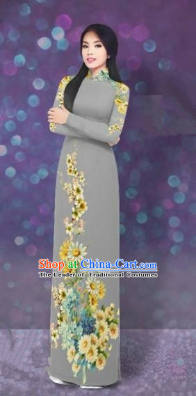 Traditional Top Grade Asian Vietnamese Costumes Classical Printing Beauty Cheongsam, Vietnam National Ao Dai Dress for Women