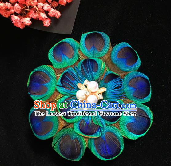 Handmade Peacock Feather Accessories Stage Show Brooch for Women