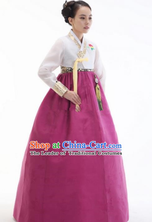 Korean Traditional Court Hanbok Garment Pink Blouse and Purple Dress Asian Korea Fashion Costume for Women