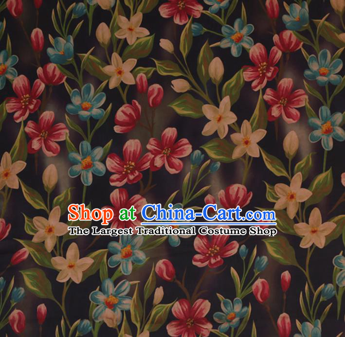 Chinese Cheongsam Classical Flowers Pattern Design Black Watered Gauze Fabric Asian Traditional Silk Material