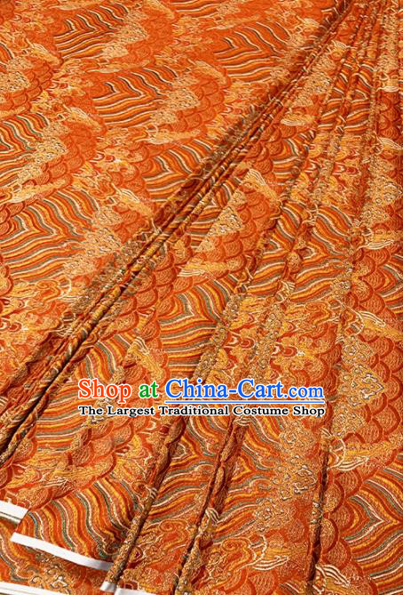 Chinese Classical Sea Wave Pattern Design Orange Brocade Fabric Asian Traditional Satin Tang Suit Silk Material