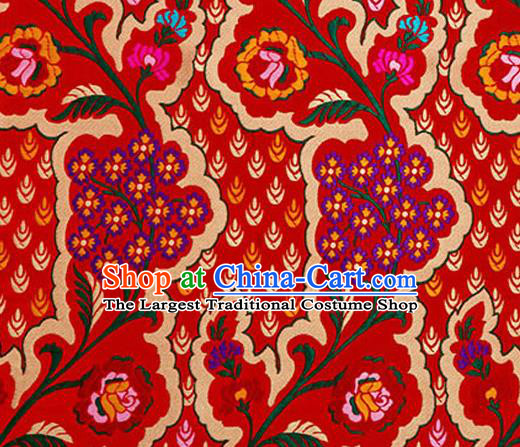 Chinese Traditional Silk Fabric Cheongsam Tang Suit Flowers Pattern Red Brocade Cloth Drapery