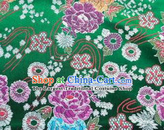 Traditional Chinese Tang Suit Silk Fabric Green Brocade Material Classical Peony Pattern Design Satin Drapery