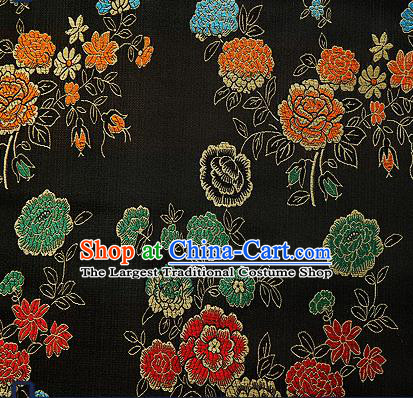 Chinese Classical Embroidered Peony Pattern Design Black Brocade Fabric Asian Traditional Satin Silk Material