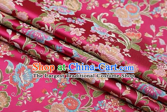 Chinese Traditional Amaranth Brocade Fabric Chrysanthemum Pattern Tang Suit Silk Cloth Cheongsam Material Drapery
