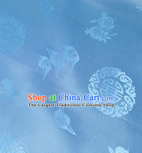 Asian Chinese Classical Auspicious Pattern Design Blue Brocade Fabric Traditional Tang Suit Satin Drapery Silk Material