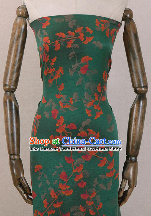 Asian Chinese Classical Maple Leaf Peony Pattern Green Gambiered Guangdong Gauze Traditional Cheongsam Brocade Silk Fabric