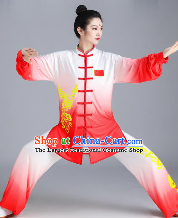 China Kung Fu Performance Costumes Tai Chi Uniforms Wushu Group Competition Clothing Martial Arts Embroidered Red Outfits