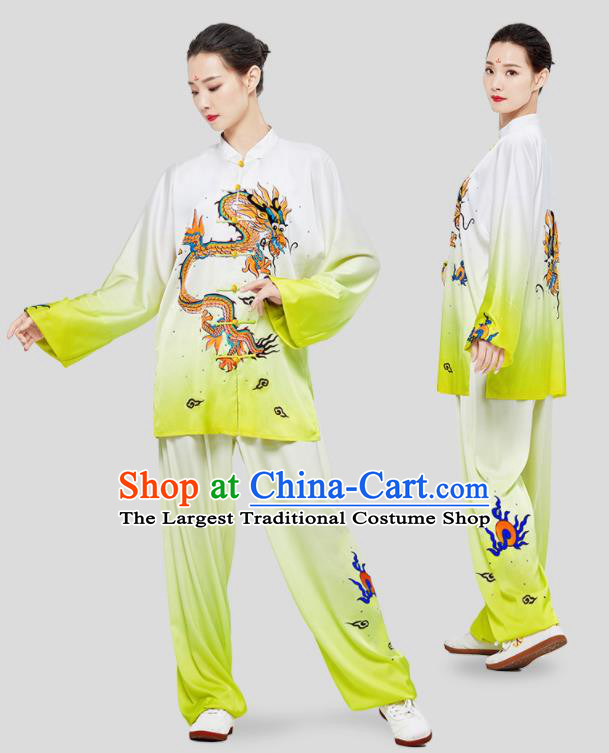 China Tai Ji Performance Costumes Tai Chi Training Yellow Uniforms Kung Fu Competition Clothing Martial Arts Wushu Outfits