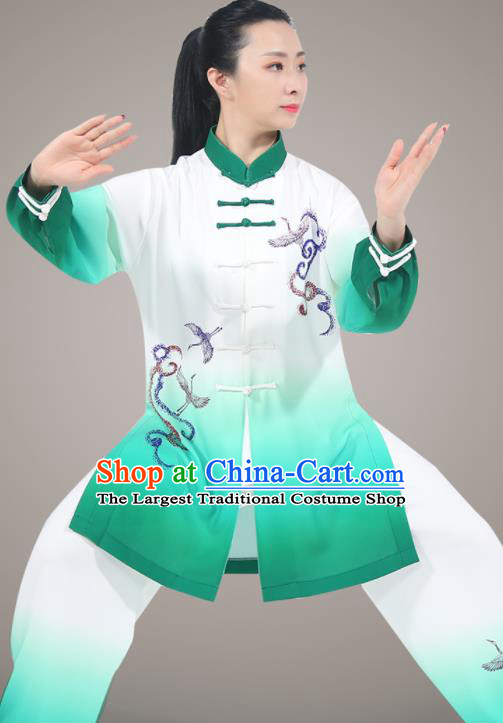 Top Kung Fu Costumes Chinese Tai Ji Training Uniform Martial Arts Competition Clothing Tai Chi Printing Crane Green Outfit