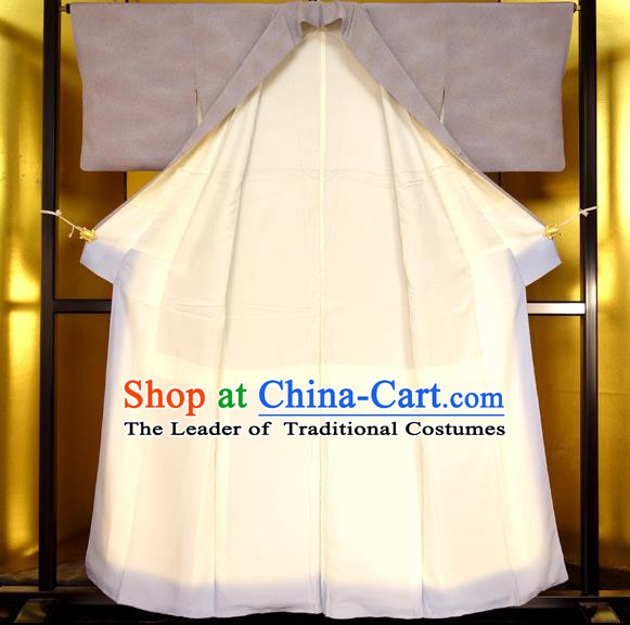 Japanese Traditional Kimono Classical Pattern Grey Brocade Asian Japan Satin Drapery Silk Fabric