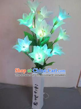 Chinese Traditional Electric LED Lantern Desk Lamp Home Decoration Blue Greenish Lily Flowers Lights