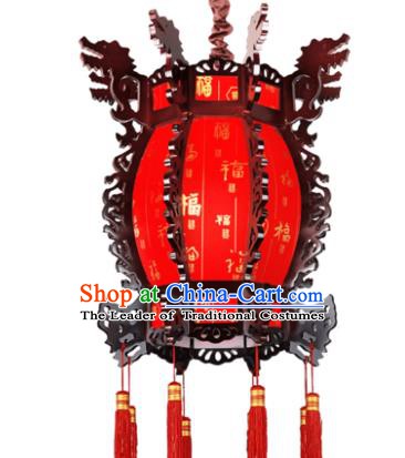 Chinese Traditional New Year Ebony Carving Red Palace Lantern Asian Handmade Lantern Ancient Lamp