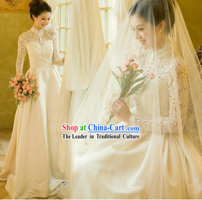 Modern Chinese Mandarin Collar Romantic Wedding Bridal Veil Dress
