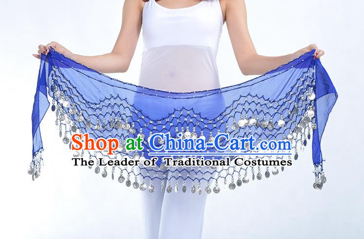 150. Asian Indian Belly Dance Paillette Royalblue Buttocks Scarf Waistband India Raks Sharki Belts for Women