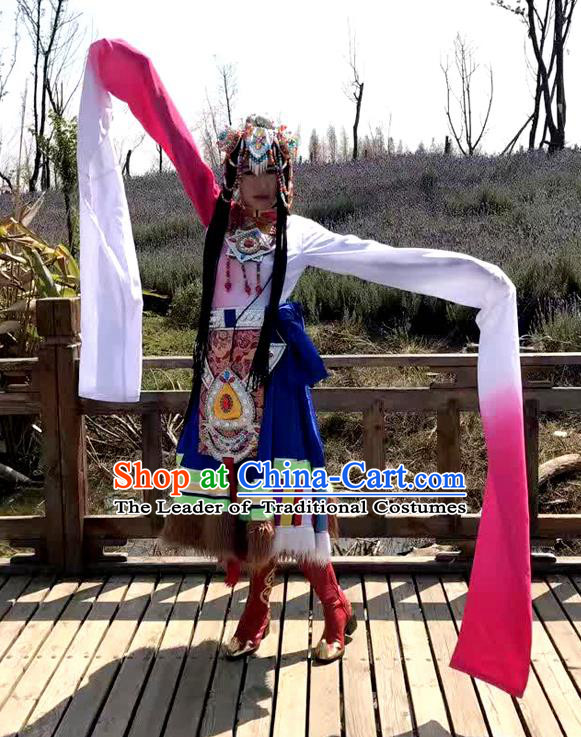 6047. Traditional Chinese Mongol Nationality Dancing Water Sleeve Costume, Mongols Female Folk Dance Ethnic Pleated Skirt, Chinese Mongolian Minority Nationality Embroidery Costume for Women