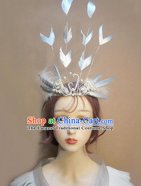 Top Baroque Bride Argent Swan Hair Crown Stage Show Headdress Catwalks Dance Hair Accessories